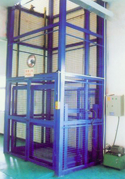 • 液壓式升降貨梯是在兩層之間運輸貨物的一種設(shè)備,主要由兩列立柱,臺面和液壓驅(qū)動部件等部分組成。載重可以從200kg到2000kg,臺面可以做到3米×2米,高度可以做到6米,上升速度為3.5米/分鐘。升降平臺的上升和下降是通過安裝在導(dǎo)軌里面的液壓油缸來實現(xiàn)的。液壓油缸是通過安裝在地面旁邊的液壓泵站提供動力來驅(qū)動的。一般標(biāo)準(zhǔn)的電源為三相380V,單相為220V也可??刂齐妷簽?4V。在每一層都安裝有控制盒及急停按鈕。超行程開關(guān)安裝在頂部,防止設(shè)備超過設(shè)定高度運行。防爆閥在油缸底部,防止油管爆裂,平臺突然下降。如果載重超過額定載重的120%,平臺將不會起升。每一層都安裝有和設(shè)備互鎖的門,只有當(dāng)平臺在那一層,那層的門才能開啟,否則門是打不開的。如果有一扇門沒有關(guān)好,設(shè)備是不會動作的。這樣可以保障人員貨物的安全。